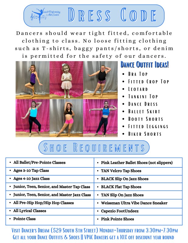 - Write the student's name in all of their dance shoes, as well as their dance bag. This will help ensure the student will take home their own shoes.